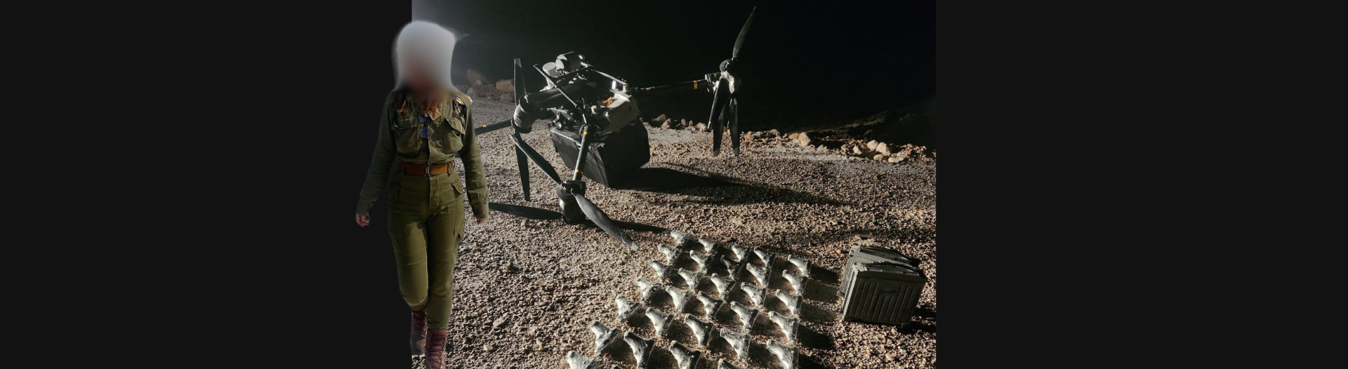 בחסות החושך, איתרה בשבוע שעבר סמל ש', תצפיתנית בחמ"ל אוגדה 80, מטרה חשודה. לאחר שחקרה אותה לעומק, התברר כי מדובר ברחפן בגודל אדם - שנשא 40 אקדחים. שחזרנו יחד איתה את רגעי הזיהוי, ההפלה והתפיסה, בעזרת כוח הסיור של פיקוד המרכז