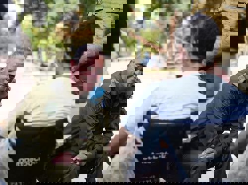 בנוסף נפגש עם רס"ל מ' מגדוד ההובלה "אבירי הצפון", שנפצע בעת שירות בבסיס, וגם הוא עובר תהליך שיקום מעורר השראה. ראש אט"ל אמר לרס"ל מ', שמשרת בקבע: "חשוב לי שתדע שיש לך לאן לחזור, גם אם השיקום יקח קצת זמן - קודם כל תחזור למשפחה ואחר כך גם אלינו, לצבא".