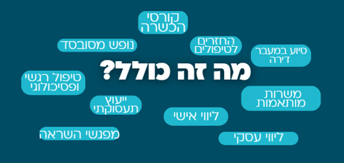 - סל רווחה רבעוני המותאם לגודל המשפחה וכולל החזרים עבור שמרטפות, תמיכה בבית, טיפולים ועזרה מקצועית.