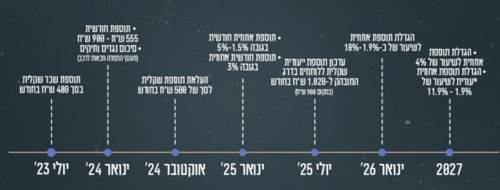 ⦁ עדכון של 1% בתוספת הסכם ההסתדרות (עלייה מ-3% תוספת המשולמת החל מינואר 25 לשיעור של 4% במצטבר)
