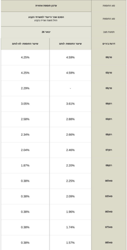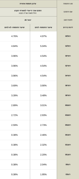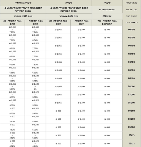 לפניכם טבלה המפרטת את עדכוני תוספות השכר לשנת 2026: