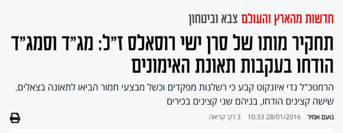 כותרת כתבה מאתר מעריב בקשר לפרשת סרן רוסאלס ז"ל מיום 28 בינואר 2016,