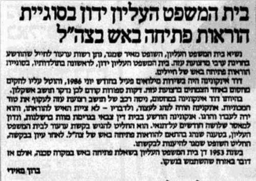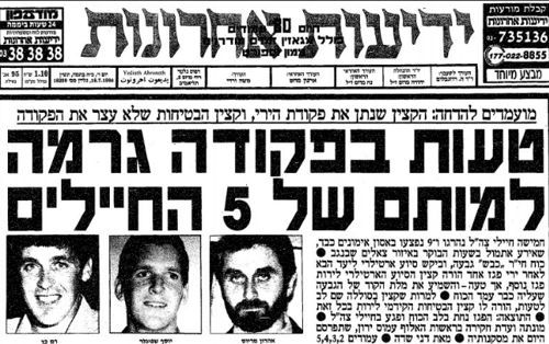 כותרתו מעיתון "מעריב", יום שלישי, 3 ביולי 1990