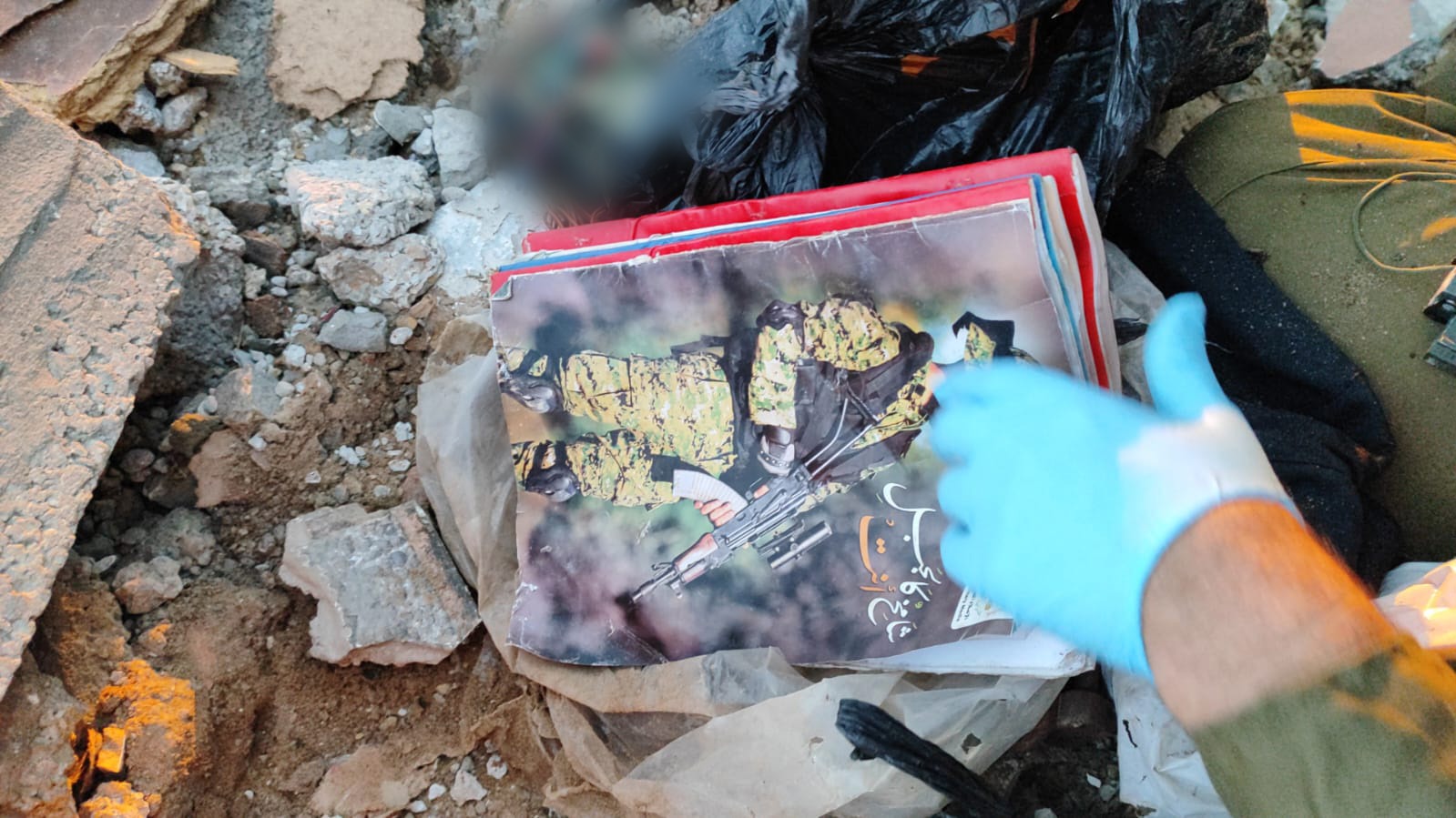 בשבוע שעבר, לאחר אירוע חילופי האש בו חוסלו שישה מחבלים, הכוחות סרקו את המרחב ואיתרו ציוד ואמצעי לחימה, ביניהם: מטען, מחסניות וחוברת הדרכה להכנת חומרי נפץ.