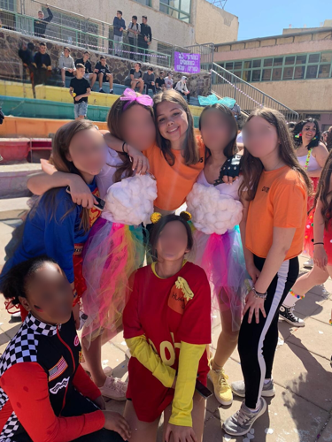 באמצע - נועה, ולשמאלה רב"ט מ', בבית הספר