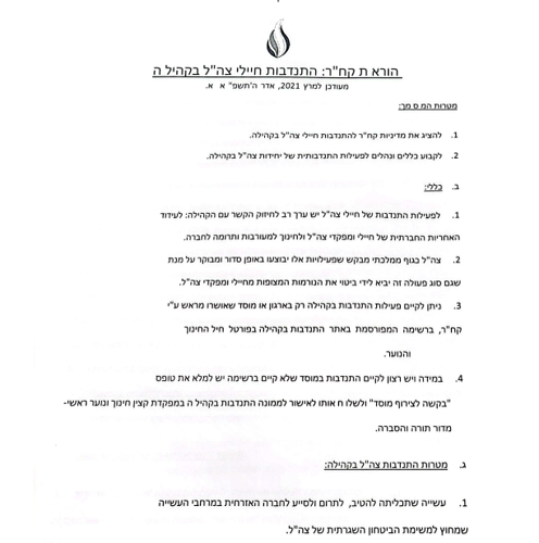 לפניכם מדיניות קח"ר בנושא התנדבות צה"ל בקהילה.
