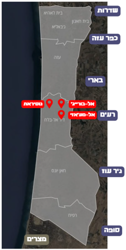 לקראת מתקפת הפתע בשבעה באוקטובר, התרכזו מחבלי חמאס בנקודות כינוס ברצועה, מהן יצאו למתקפה על ישובי מערב הנגב. במרכז הרצועה, התכנסו מחבלים רבים בעיירה דיר אל-בלאח, ממנה יצאו חוליות מחבלי נוח'בה לישובים, ביניהם נירים, כיסופים ובארי. חוליות נוח'בה רבות שהגיעו מהאזורים הצפוניים והדרומיים של רצועת עזה, ביניהם ח'אן יונס, שג'עייה והעיר עזה, התארגנו במחנות המרכז הסמוכים לגדר, ופשטו מהם על קיבוץ רעים ועל פסטיבל ״נובה״ שהתקיים בחניון רעים הסמוך.