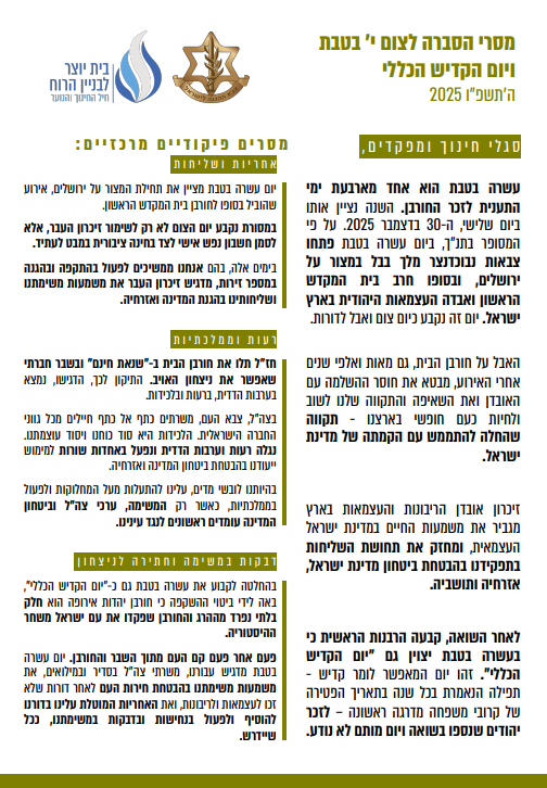 מסרי הסברה לצום י' בטבת ויום הקדיש הכללי