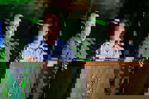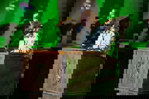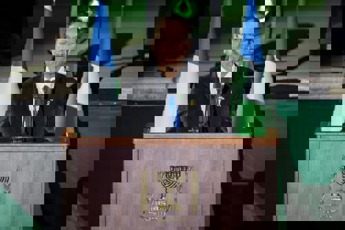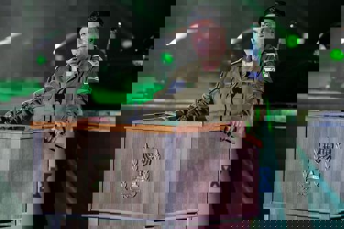 "ואכן, גם היום, ובכל יום שעבר מאז שבעה באוקטובר", הוא המשיך, "לוחמות ולוחמי השריון וכל לוחמי צה"ל וכוחות הביטחון מלמדים אותנו מחדש את הלקח הזה: שהניצחון יושג לא רק בשדות הקרב, אלא גם במעגלי הערבות ההדדית – בקהילות שתומכות במפונים, במתנדבים שמחזיקים את העורף, בתמיכה במשפחות השכולות ולמשפחות החטופים, ובצבא שלם שנשען על אמון בין אדם לחברו, זה מה שנקרא צבא-עם, זה מה שנקרא הביחד הישראלי".