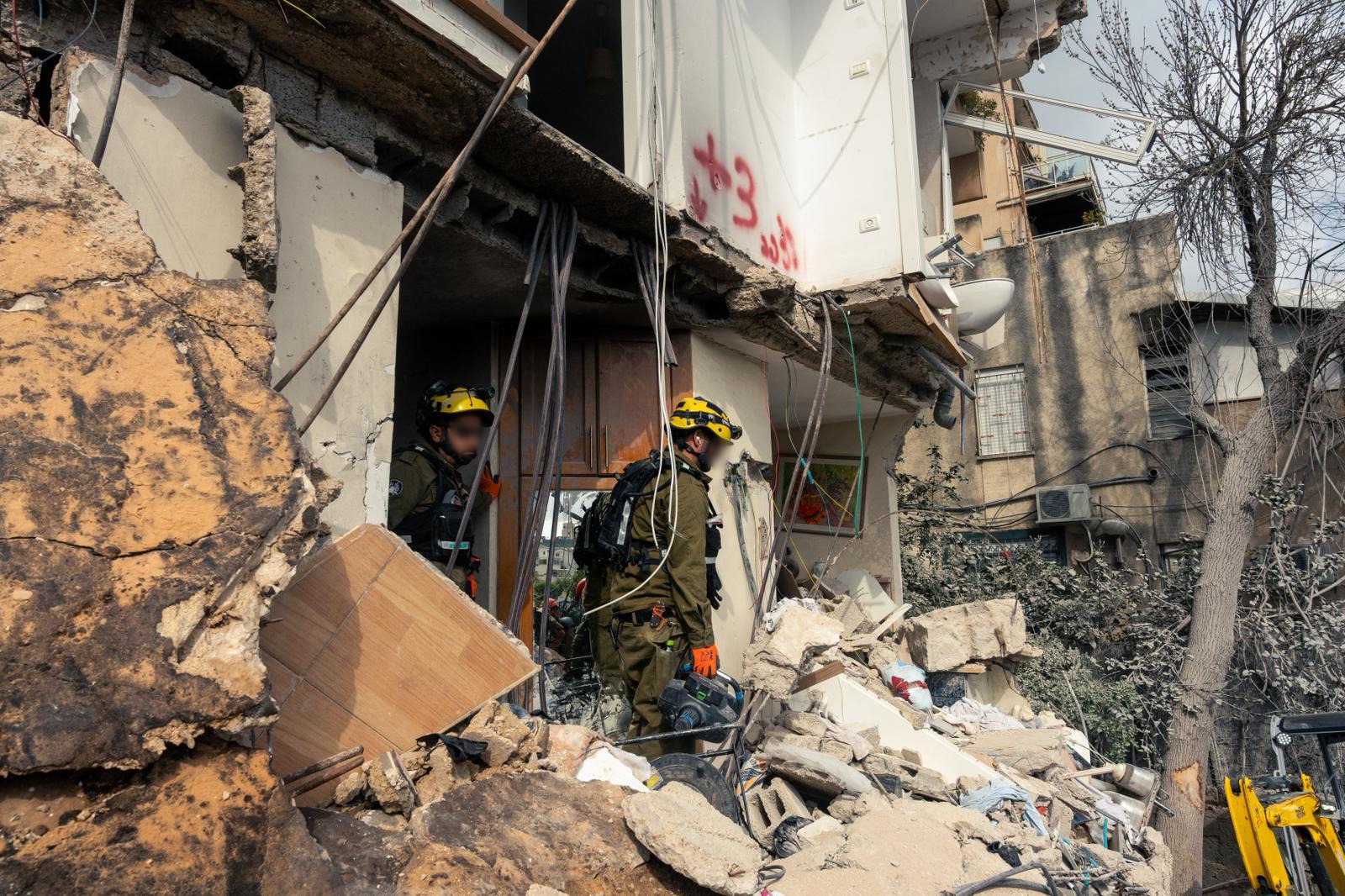 12:48 | בתום שעות ארוכות של מאמצים ופעילות של כוחות יחידת החילוץ הארצית (היחצ"א) ושל מחוז חיפה וחטיבת החילוץ של פיקוד העורף, בשיתוף פעולה עם ארגוני חירום ולוחמי האש, חולצו ארבעת הלכודים שנמצאו תחת ההריסות בזירה ללא רוח חיים.