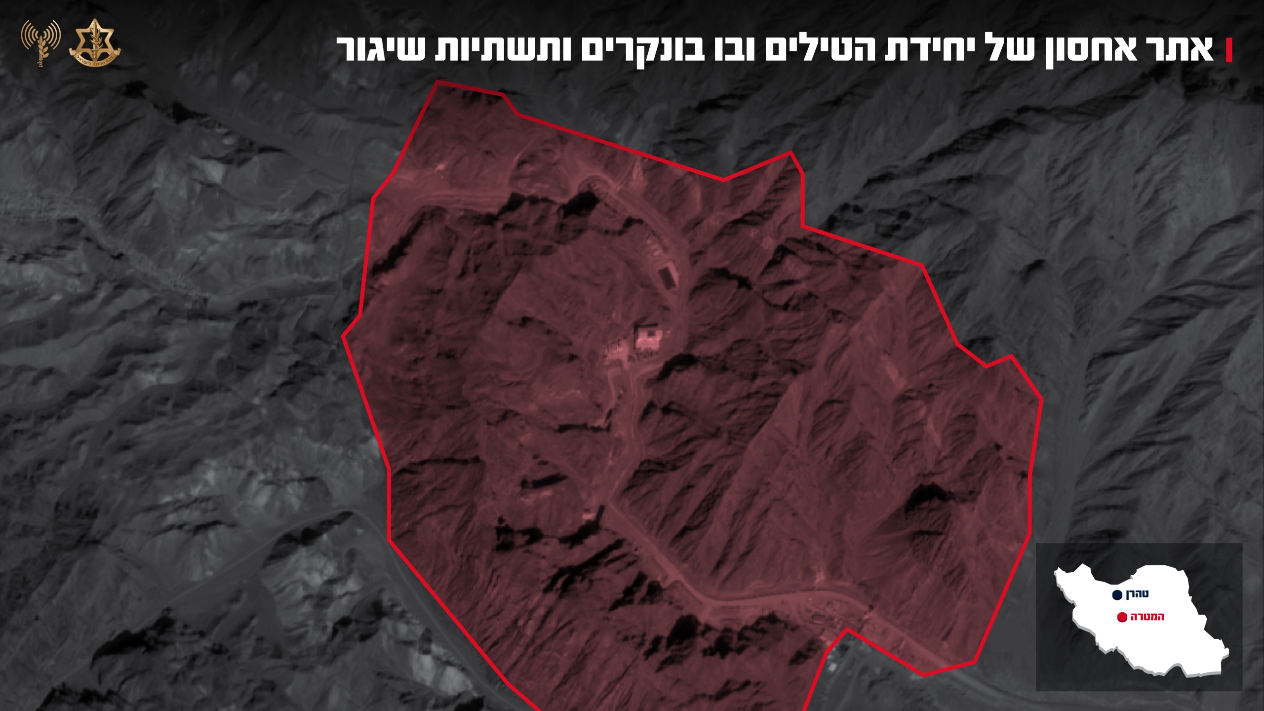 • אתר תת-קרקעי לאחסון וייצור טילים בליסטיים ממנו פעלו מאות חיילים מהכוחות החמושים של משטר הטרור האיראני. האתר הכיל בונקרים ומפקדות צבאיות של גורמי משטר.