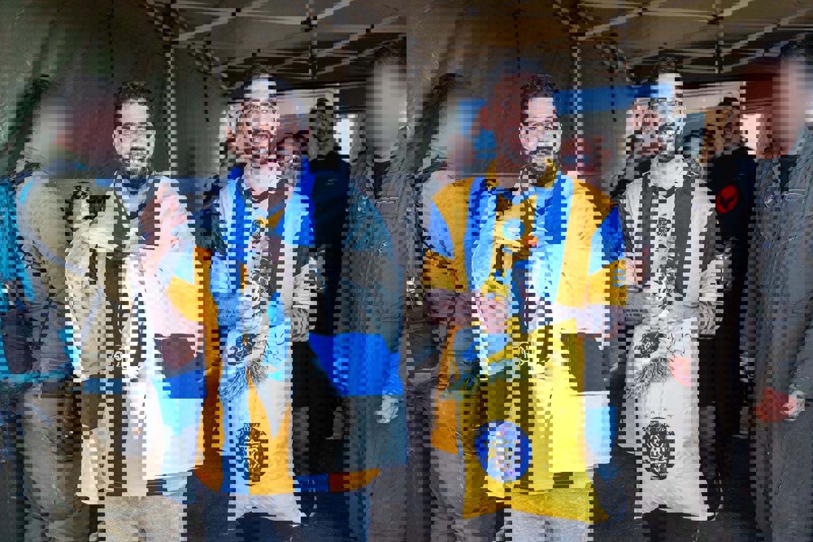 12:37 | גורמי אכ"א וגורמי רפואה של צה"ל מלווים את מתן צנגאוקר, מקסים הרקין, שגב כלפון, יוסף-חיים אוחנה, נמרוד כהן, אבינתן אור, אביתר דוד, איתן הורן, דוד קוניו, אריאל קוניו, אלקנה בוחבוט, בר קופרשטיין ורום ברסלבסקי, והם יעברו הערכה רפואית ראשונית ויפגשו עם בני משפחותיהם בנקודת הקליטה במרחב עוטף עזה.