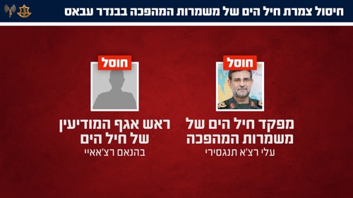 14:38 | פגיעה בצמרת הטרור: צה"ל חיסל את מפקד וראש אגף המודיעין של חיל הים במשמרות המהפכה.