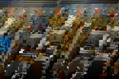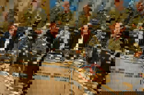 20:19 | הרמטכ"ל, רא"ל אייל זמיר, שר הביטחון, ישראל כ"ץ, מפקד חיל האוויר, אלוף תומר בר, ראש אגף המודיעין, אלוף שלומי בינדר, ראש אגף המבצעים, אלוף איציק כהן ומפקד פיקוד העומק הנכנס, אלוף דן גולדפוס, מבור חיל האוויר בזמן תקיפת צה"ל בתימן.