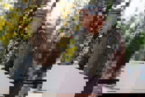 "מאז", הוא המשיך, "לא הפסקת, לקדם, לתכנן, להיות שותף מלא בעשייה המבצעית ולהגיע לכל נקודה שצריך ונכון שתהיה בה, הכל מתוך תחושת שליחות ומסירות ששמורות רק לך. אך לא הסתפקת בזה, על אף הקשיים ומורכבויות נקראת לדגל שוב, כאשר התבקשת לתפוס פיקוד על היחידה לתקופה קצרה".