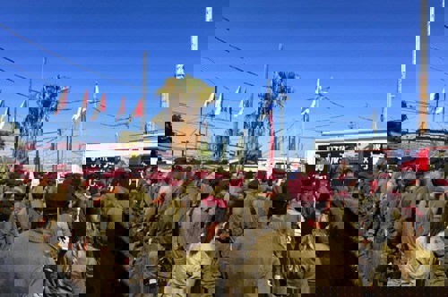 מעמד חטיבת 'האש' (282) במחנה יפתח, בראשות סגן מפקד חטיבה 282, סא"ל ב'