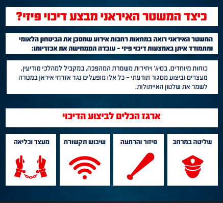 משטר הטרור האיראני רואה במחאות רחבות איום, ופועל לדכא אותן באמצעים אכזריים - איסוף מודיעין, מעצרים וכליאה, שיבוש תקשורת, ועוד.