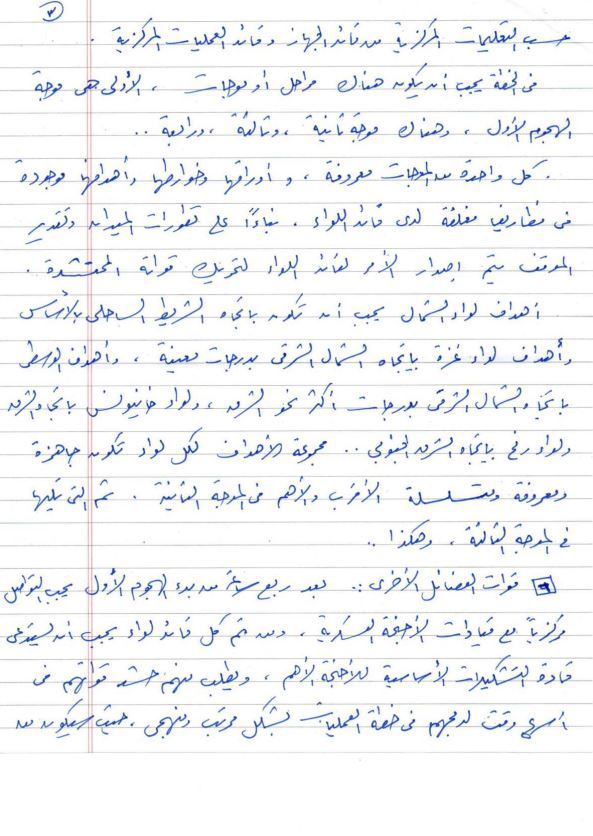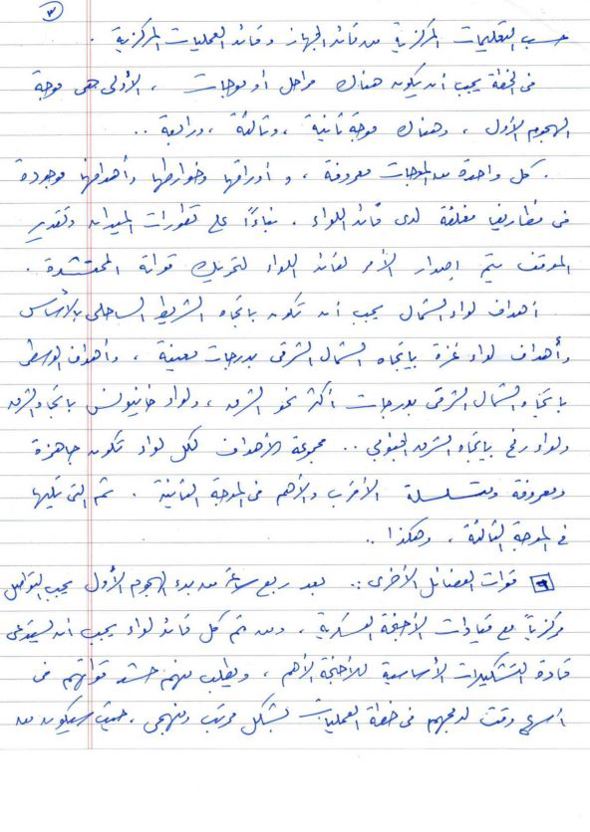 "המטרות של חטיבת הצפון צריכות לראות בראש ובראשונה לעבר קו החוף. המטרות של חטיבת עזה צריכות להיות בכיוון צפון-מזרח עד זווית מסוים. מטרות מחנות המרכז צריכות להיות בכיוון צפון-מזרח בהטיה לעבר המזרח. מטרות חטיבת ח'אן יונס צריכות להיות לכיוון מזרח. המטרות של חטיבת רפיח צריכות להיות לכיוון דרום-מזרח".