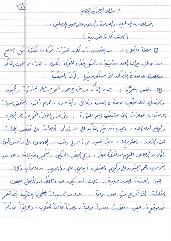 "יש להקפיד שייצאו תמונות שיגרמו לפרץ שכרון חושים, טירוף והתפרצות בקרב העם שלנו, במיוחד בגדה, ב"פנים", בירושלים ובכל האומה שלנו. זאת, כדי להמריץ היענות לקריאות שיקראו להם לצאת להתקומם. במקביל, צריכות לגרום לפרץ של תחושות אימה ופחד בקרב האויב".