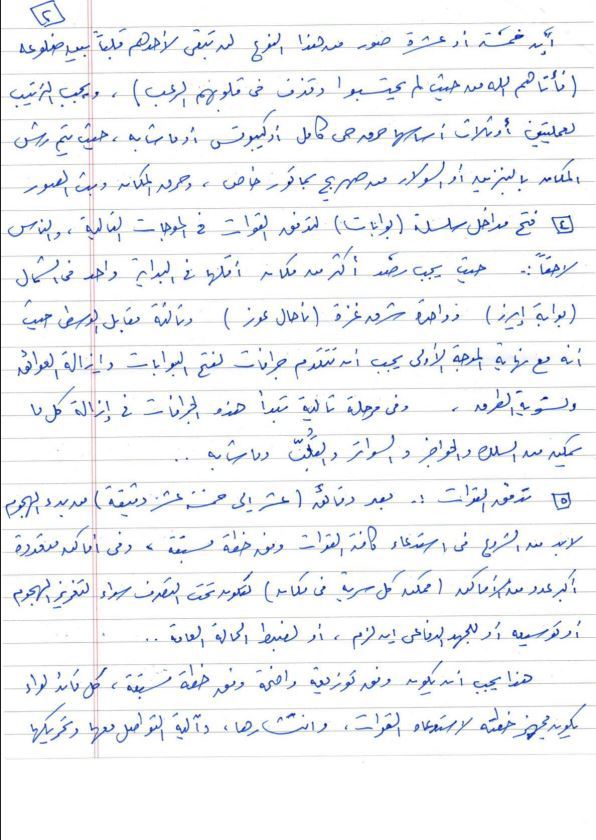 "אם לא נהיה מוכנים לנצל עד כלות את ההזדמנות, אז האויב יצליח להשתלט על המהומה ולעבור להתקפת נגד או שהוא יקבל סיוע מבחוץ , ואז המצב יתהפך נגדנו בצורה הגרועה ביותר. לכן הכרחי להיות מוכנים לזרימת כוחות, פיתוח ההתקפה, הרחבתה ותגבורה עד למקסימום במהלך שש עד עשר השעות הראשונות כדי לקבוע עובדות מוצקות בשטח שיסכלו כל אפשרות של התקפת נגד".