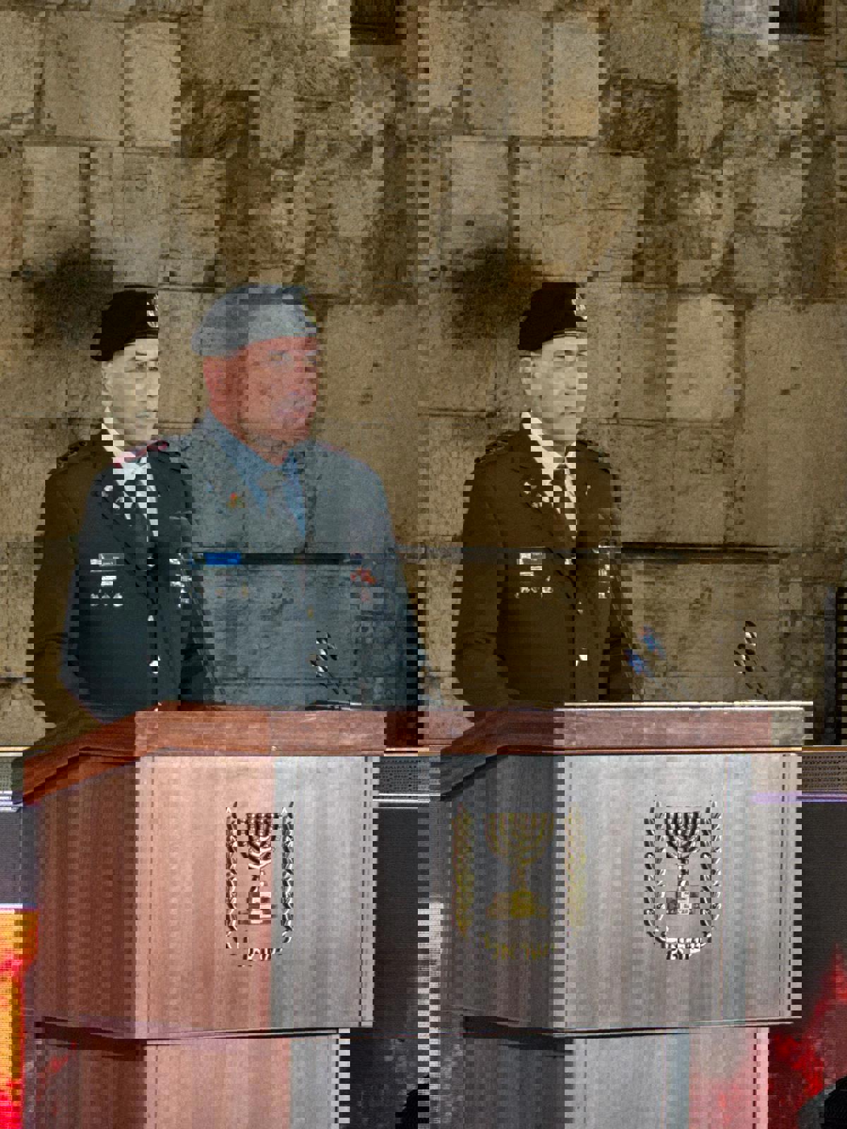 כאן, למרגלות הכותל המערבי, אנו זוכרים את הנופלים כולם ואת הציווי שהותירו לנו לעמוד יחד, למען הבטחת שלומו של העם ושלומה של הארץ. ציווי העובר מלוחם ללוחמת המגינים על עמנו, זוכרים את הנופלים, ומבטיחים את נצח ישראל. יהי זכר הנופלים ברוך .