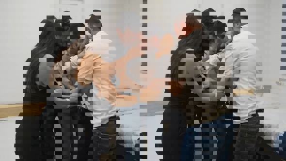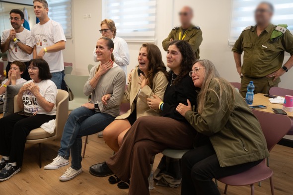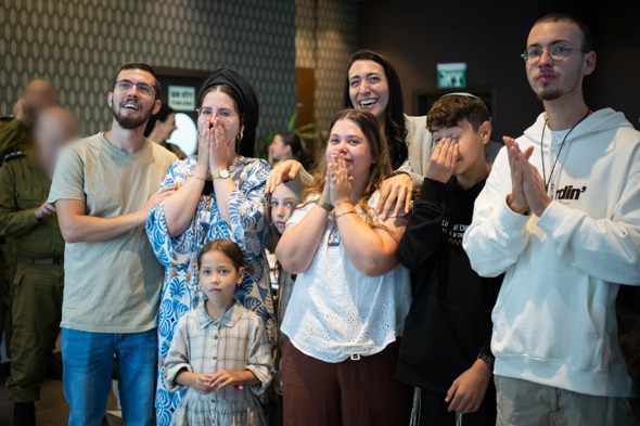 משפחותיהם של איתן מור, עמרי מירן, מתן אנגרסט, גלי וזיו ברמן צופות ברגעי החבירה לכוח צה"ל: