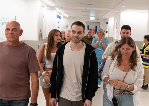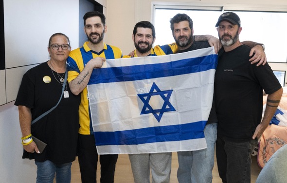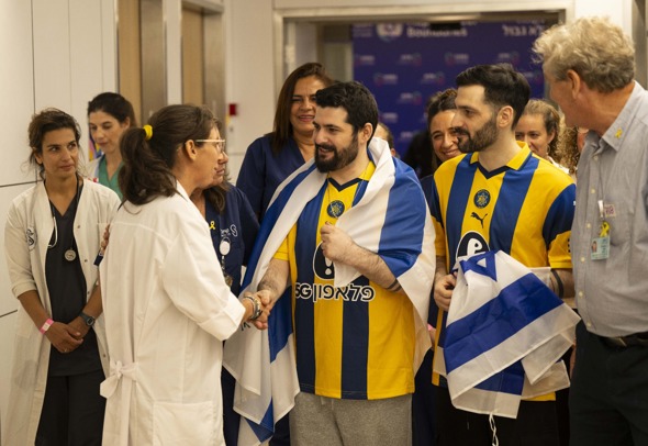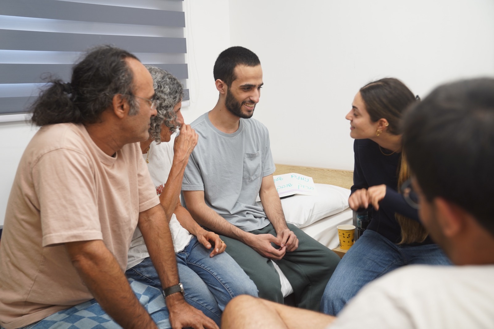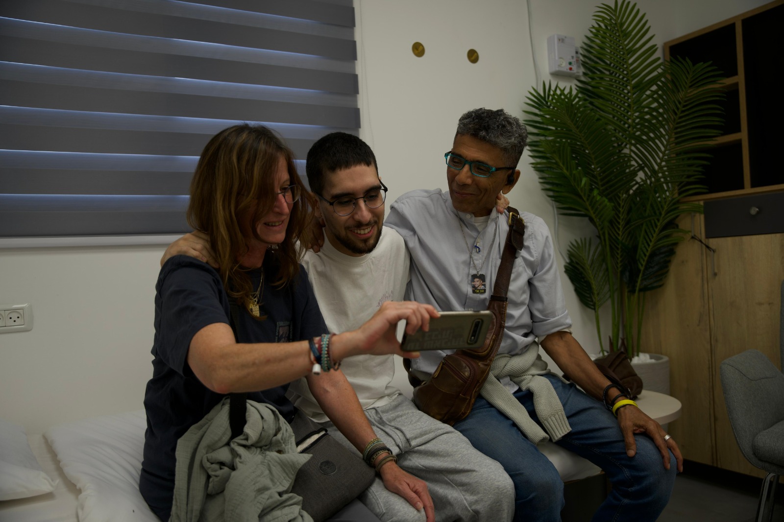 תמונות של אלון אהל, מתן אנגרסט, גלי וזיו ברמן, גיא גלבוע-דלאל, איתן מור ועמרי מירן - עם הגעתם לבתי החולים ומפגש עם בני משפחותיהם: