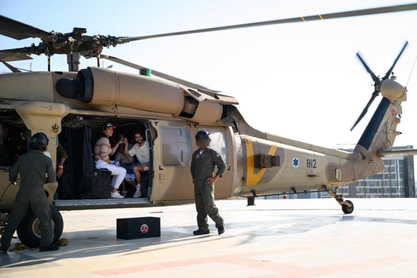 תיעוד מהמסוק שנערך להגעתם של גלי וזיו ברמן: