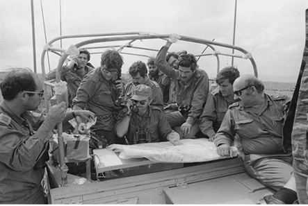 חפ"ק אוגדה 36 (רפול, מפקד האוגדה, במרכז) במהלך קרבות הבלימה במלחמת יום הכיפורים (מקור: ארכיון צה"ל ומערכת הביטחון).