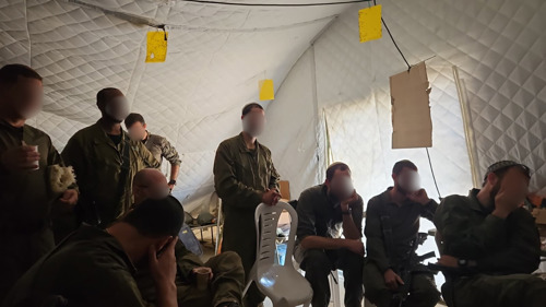 חלק מלוחמי החטיבה צופים בחזרת החטופים מהשטח