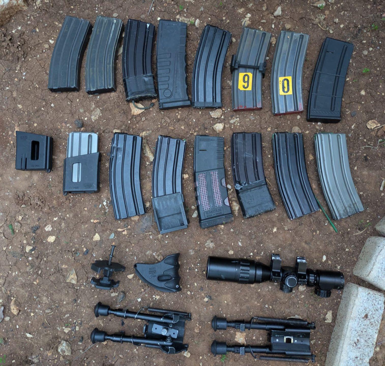 בנוסף, הכוחות איתרו והחרימו יותר מ-10 כלי נשק, בהם אקדחים, כלי נשק מסוג ׳קרלו׳, רובה ציד, 'M16' ו-'M4', זאת לצד מטעני צינור מאולתרים, חלקי נשקי, תחמושת וציוד צבאי.
