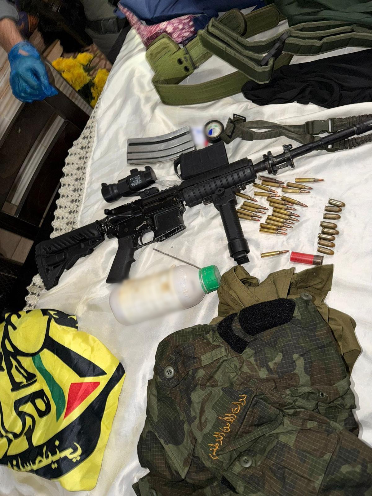 במרחב חטיבת מנשה נעצרו 15 מבוקשים, בהם פעילי חמאס והג'יהאד האסלאמי שפעלו בייצור מטענים. במהלך הפעילות נתפסו כלי נשק מסוג M16, חלקי נשק וציוד צבאי.