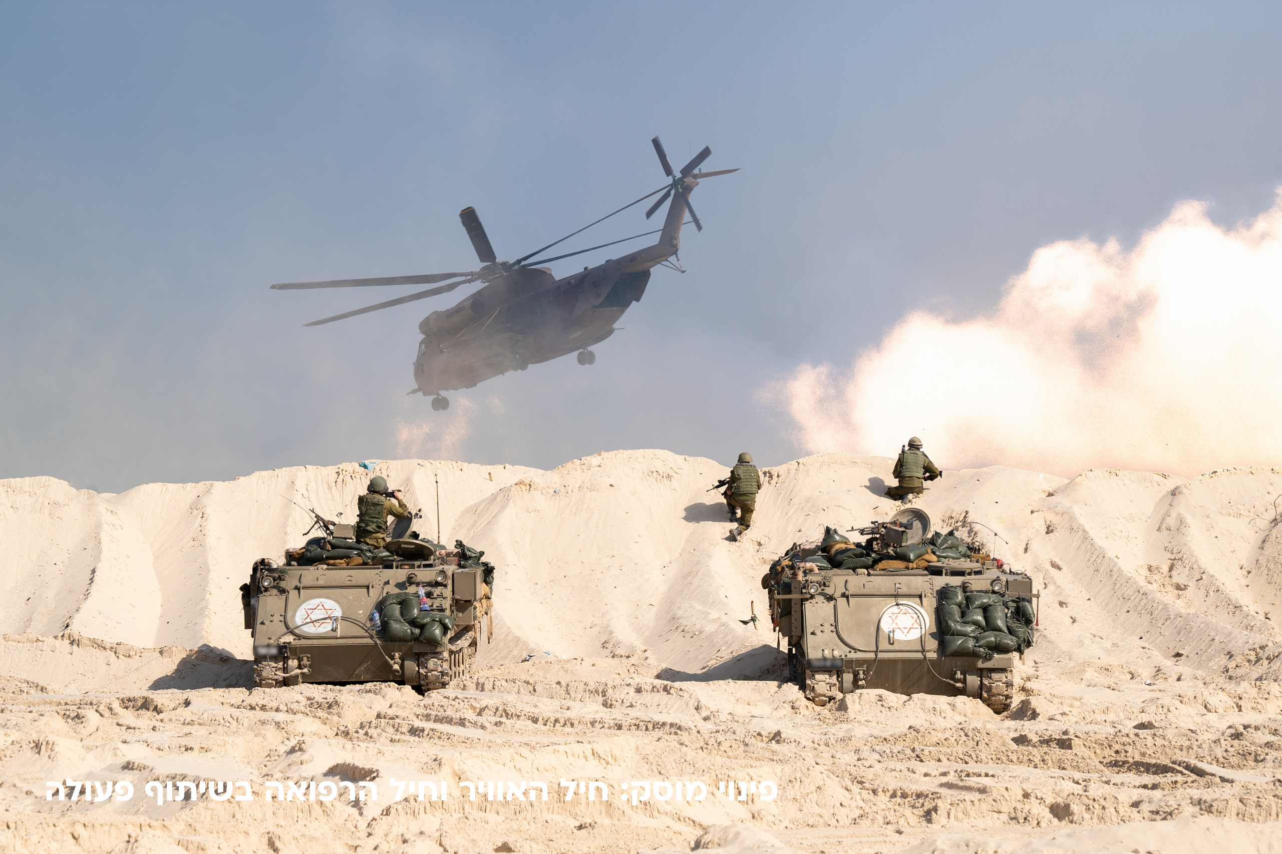 אך לתמונה המופיעה בהזמנה ומודפסת על גבי קיר גדול באולם התערוכה, יש משמעות סמלית עוד יותר עבורה. "כשליאור התחיל לצלם מסעות ומסלולים, הוא הבין שהוא חייב לעמוד בקצב של הלוחמים - ולרוץ יחד איתם", מספרת מימי. "בתמונה שבחרתי ראיתי בדיוק את המהירות, המיידיות ואת שותפות הגורל הזאת - הצלם רץ לצד הכוחות, לא מאחורה ולא מקדימה".