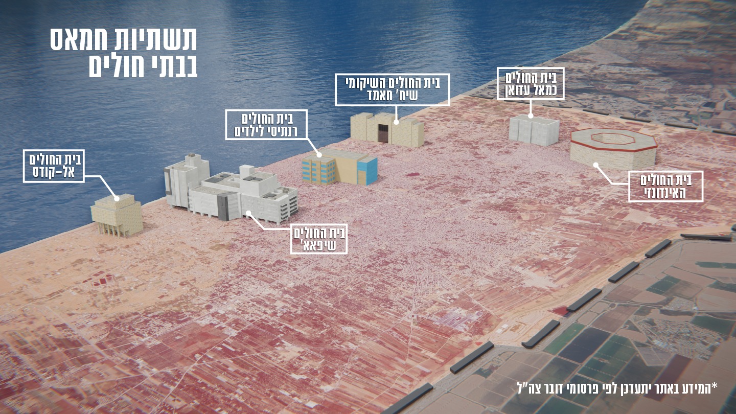 בימים האחרונים, פועלים כוחות צה"ל, ובהם כוחות מיוחדים, בבתי חולים שונים בצפון רצועת עזה, בכולם אותר דפוס פעולה עקבי ושיטתי.