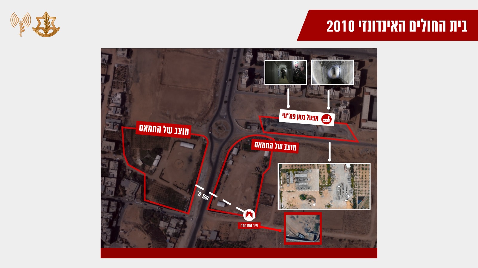 מתחת למרחב בית החולים רשת מנהרות טרור המובילה מתוך בית החולים לנכסי טרור סמוכים.