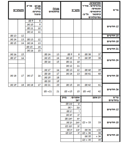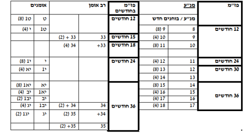 כמות חודשי הקיצור לדרגה מופיעים בסוגריים בלוחות הפז"ם (נספח ב' + ג').