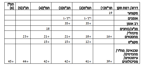 נספח ב' – טבלת הדרגות לכלל הדירוגים למעט עובדי דור ההמשך בדירוגים