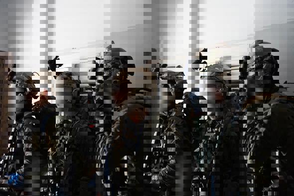 مقاتلو وحدتيْ "ماغلان" و"إيغوز" التابعتين لفرقة الكوماندوز ووحدة 13 للكوماندوز البحري يواصلون عمليات المداهمة لحي "حمد" الذي يتضمن أبراجًا متعددة الطوابق.