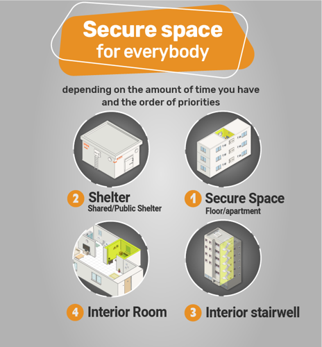 Protective rooms, communal or institutional shelters, stairwells or internal rooms – protective spaces should be chosen based on the time to reach shelter, the protection available, and the ability to reach it in time. A guide on how to choose a protective space.