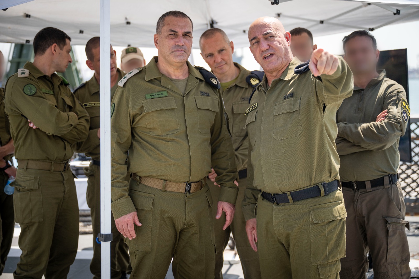 The Chief of the General Staff, LTG Eyal Zamir, visited the Navy today (Sunday) together with the Commander of the Navy, VAdm. David Saar Salama, the Commander of the Navy Training Base, Capt. S., and commanders of the Advanced Naval Command Course. Afterwards, he visited the Haifa Base with the Commander of the Haifa Base, RDML. Eliezer Sukholitsky, the Head of the Sea Division, RDML. Amir Gutman, commanders of the operational flotillas, and additional commanders.
