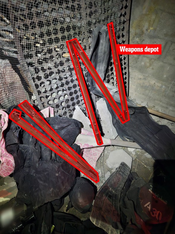 The weapons storage facility was used by Hamas to store weapons, explosive devices, and rockets — all while cynically exploiting the civilian population for its terrorist purposes.