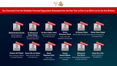 As part of the effort to enforce the understandings, IDF troops led by the Northern Command, in cooperation with the Israeli Air Force and guided by the Intelligence Directorate, eliminated more than 370 terrorists from the Hezbollah terrorist organization, Hamas, and the various Palestinian terrorist organizations.