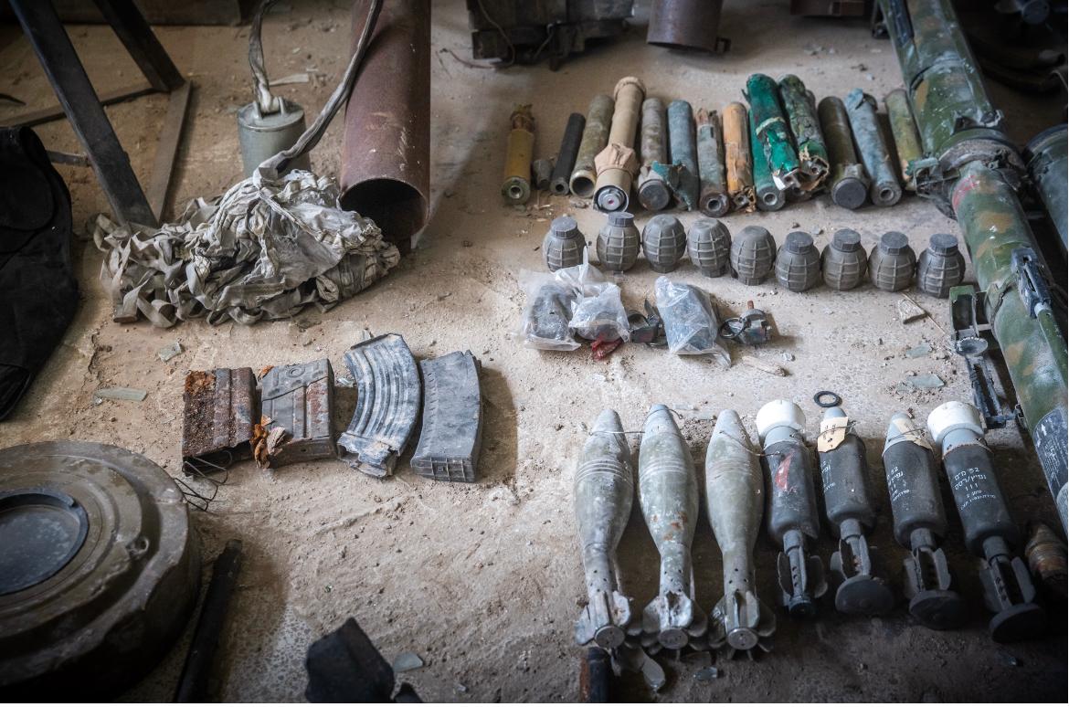 Inside the school, troops located hundreds of weapons and combat materials. Among them were anti-tank rockets, mortar shells, grenades, launchers, light firearms, and large quantities of explosive devices, explosive materials, and detonation mechanisms–all prepared for use.
