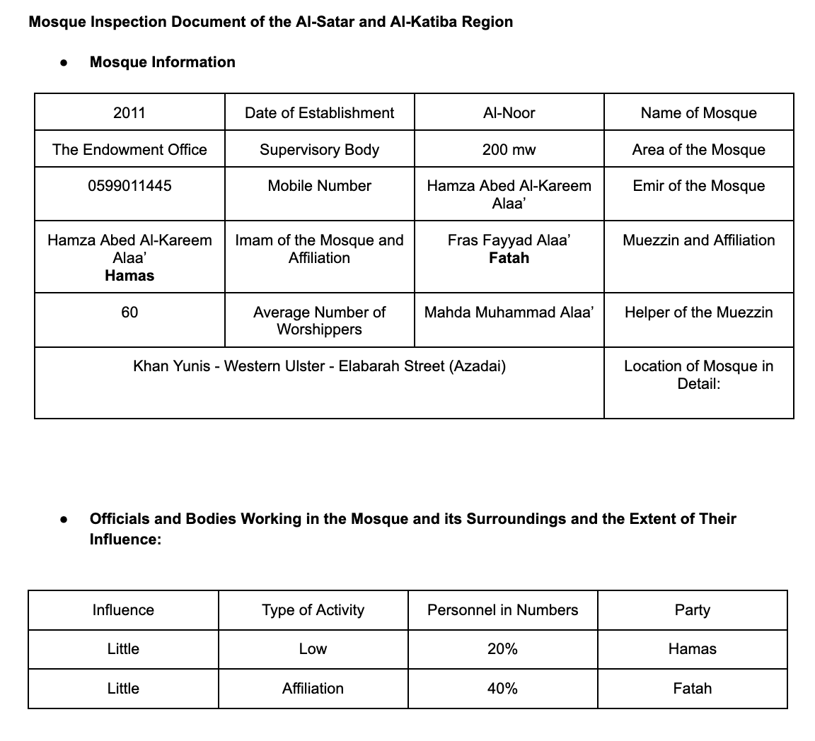 Documents collected by the IDF recently in Khan Yunis reveal the influence of Hamas on the religious leadership in the Gaza Strip and demonstrate the extent of Hamas's infiltration into local religious leadership positions with the intent of promoting hate speech, instigating violence and encouraging civilians to join terrorist groups.