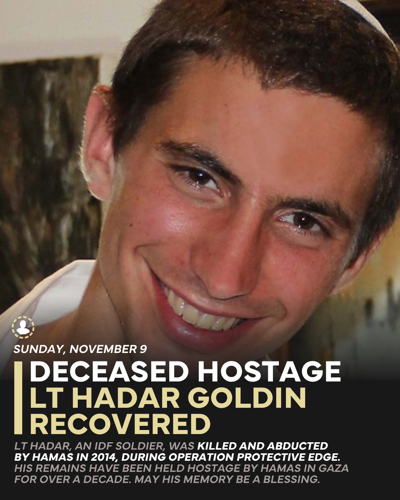 Following the completion of the identification process by the National Institute of Forensic Medicine, in cooperation with the Israel Police and the Military Rabbinate, IDF representatives informed the family of Lieutenant Hadar Goldin that his body has been returned for burial.