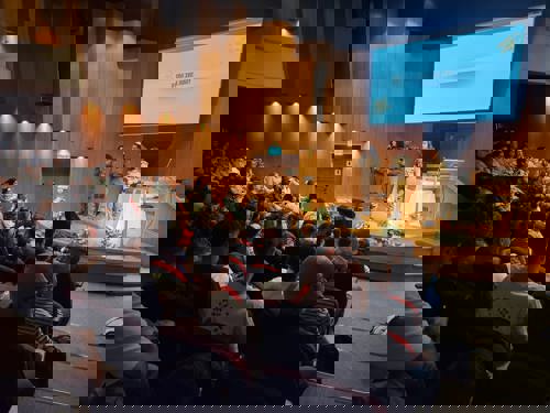 הוקרן סרטון סיכום מרגש ומשעשע מהשנה שחלפה, ולאחריו עלו שניים ממסיימי הקמ"ט, ונשאו דברים: "הייעוד שלנו הוא לראות את הבלתי נראה ולוודא שהאדם עומד במרכז. אנחנו לא מחפשים את התשובה הנכונה - אנחנו מעצבים את השאלה הנכונה".