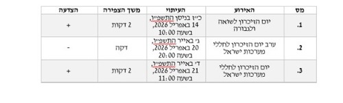 ה. עריכת "מסדר משולב" ליום הזיכרון ויום העצמאות, אפשר לקיים ביום שני, ג' באייר התשפ"ו, 20 באפריל 2026 החל מהשעה 19:45.