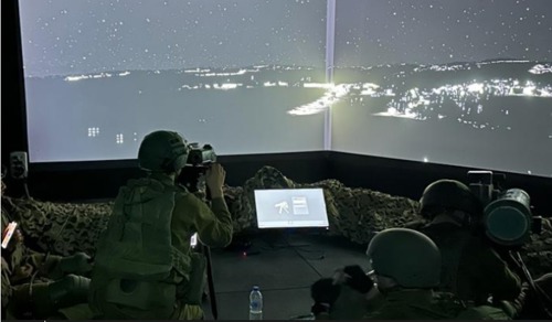 בפינה הנגדית של החלל, נמצאת תחנה נוספת בה מחזקים הלוחמים את הראייה המרחבית, ומהירות התגובה שלהם. גם היא בנויה ממסך גדול, אך הפעם בזווית של 170 מעלות, היוצר מעין חצי עיגול. "הם מתמקמים בדיוק במרכז, ומטרתם לזהות דמויות שמופיעות על המסך, לאבחן במהירות האם מדובר באיום, ולחסל אותו", מסביר סמל ד'.