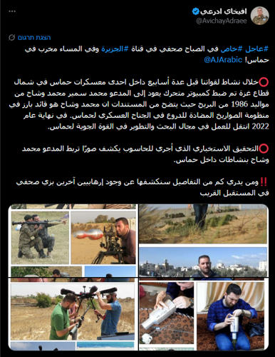 14:39 | צה"ל תקף אתמול (רביעי) בהכוונת אוגדה 210 ואמ"ן במרחב צידון וחיסל את מאהר קאסם חמדאן, מפקד הפלוגות הלבנוניות במרחב שבעא שבדרום לבנון.