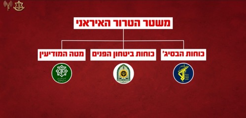 בנוסף, פגענו במנגנוני השליטה של המשטר, המפקדות והמטות שלו. חיסלנו אלפים רבים של מפקדים וחיילים של המשטר בעת שפעלו במפקדות ובבונקרים. פגענו גם במנגנוני הדיכוי של המשטר - הבסיג', ביטחון הפנים ומטה המודיעין הידועים לשמצה. עד כה, תקפנו יותר מ-500 מטרות פיקוד ושליטה. אלו תקיפות המאפשרות לנו לערער את יכולתו של המשטר לנהל את התקפותיו.